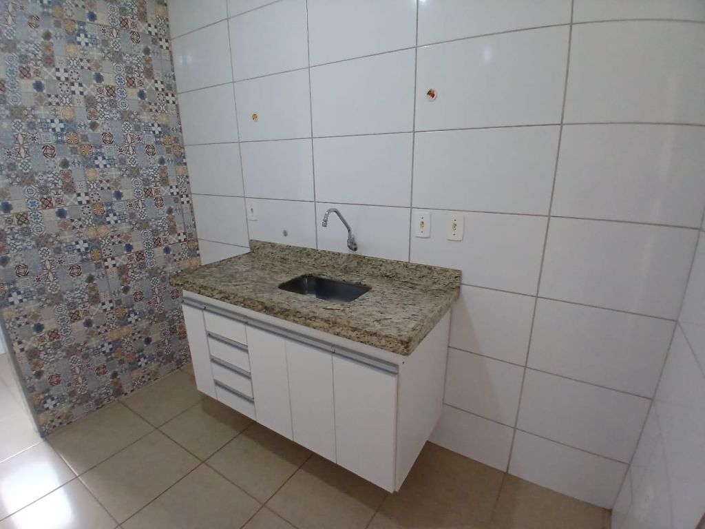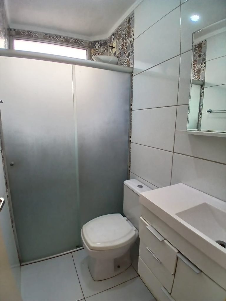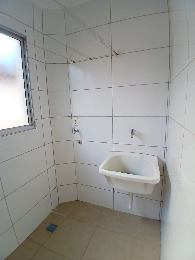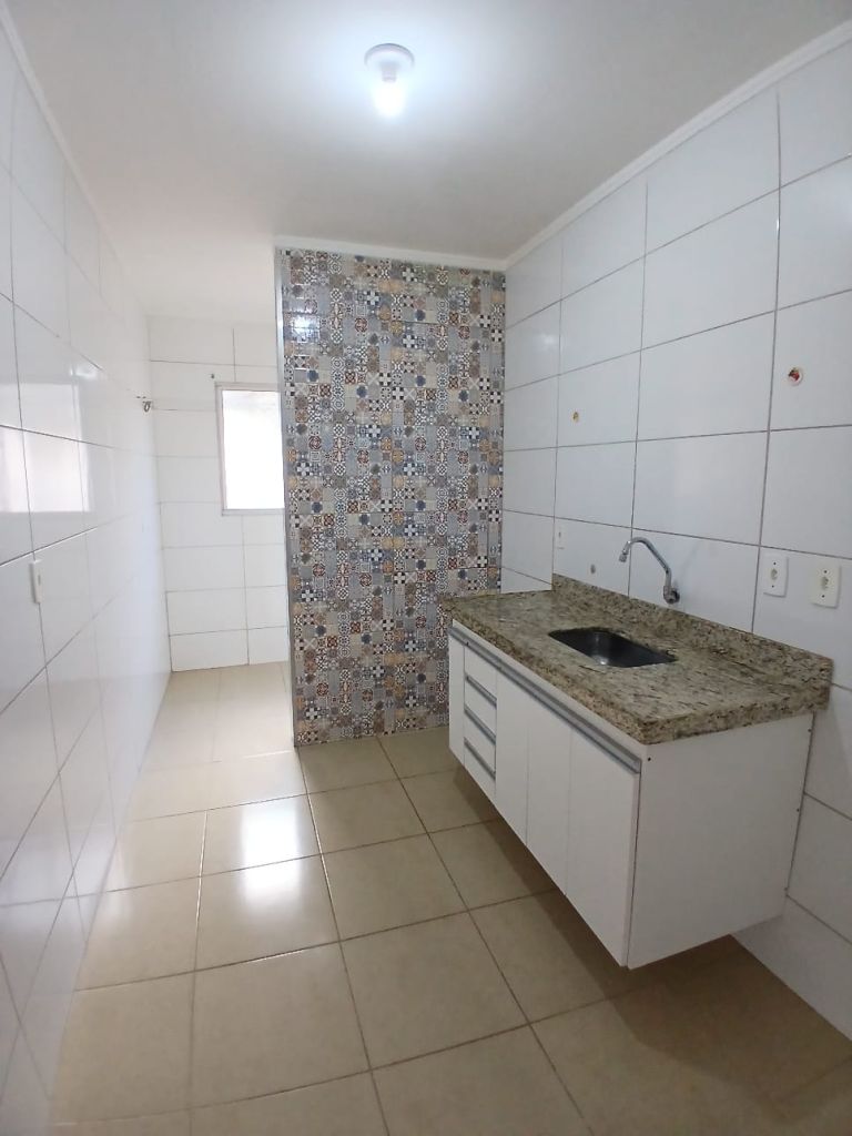 Apartamento 2 quartos, 1 banheiro, sala para 2 ambientes, cozinha com gabinete, lavanderia e 1 vaga de garagem coberta.