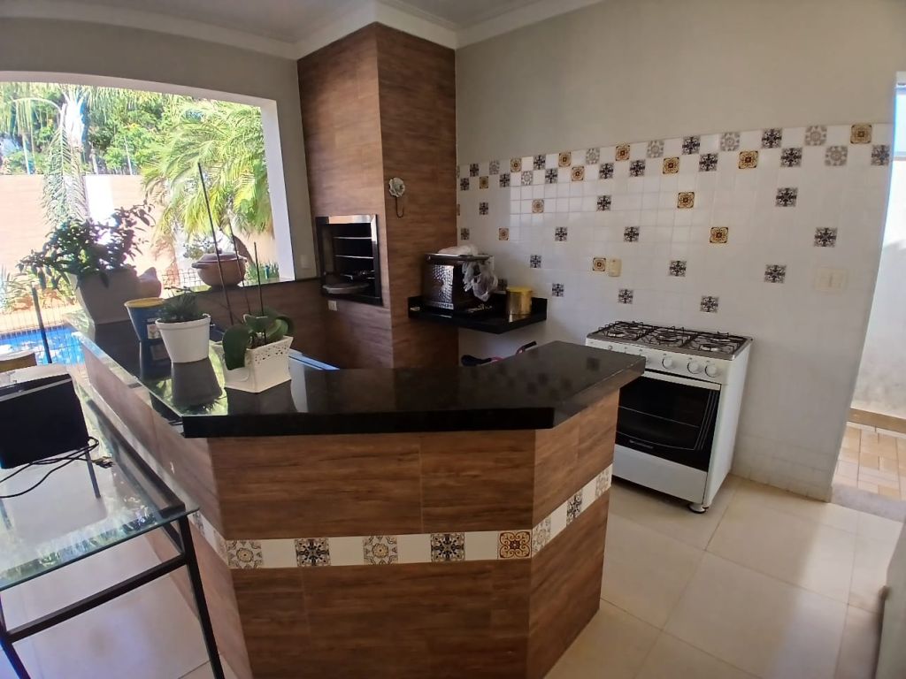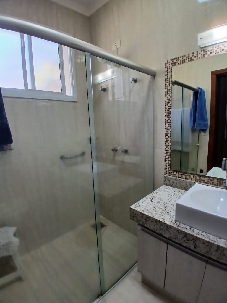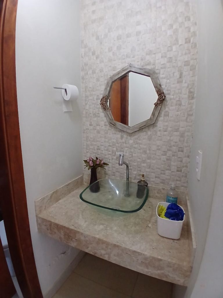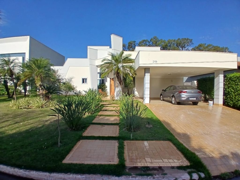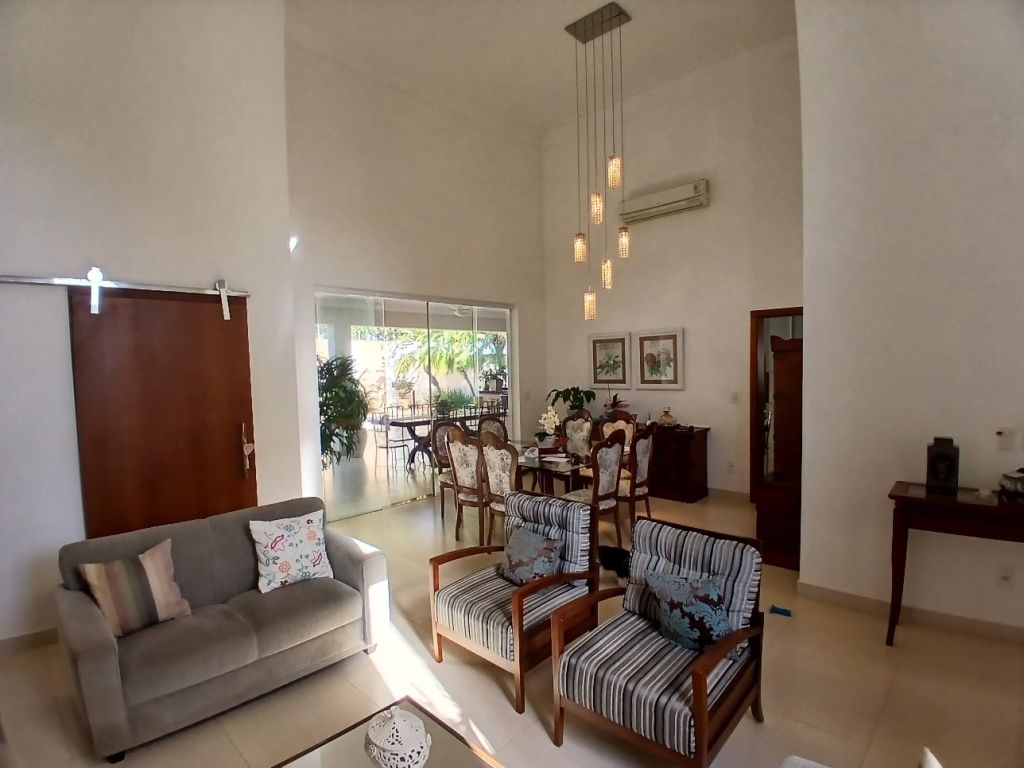 Casa de Alto Padrão em Condomínio Fechado 4 suítes todas com ar condicionado sendo 1 master com clouset, 6 banheiros, 3 salas sendo 1 para 2 ambientes com ar condicionado, cozinha panejada, lavanderia com armário, lavabo, 1 despensa, escritório com ar condicionado e garagem para 2 veículos.